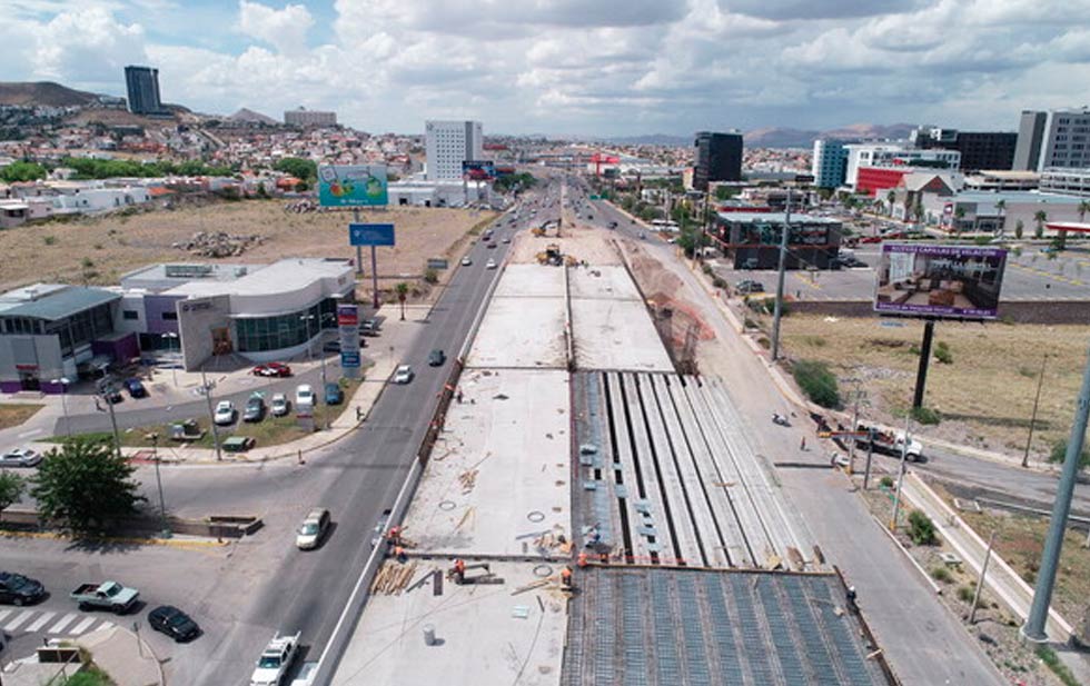 Chihuahua, Chih.- Los trabajos de construcción del paso superior que realiza la Dirección de Obras Públicas en el Periférico de la Juventud y avenida Valle Escondido – Vía Sicilia tiene un avance físico del 70 por ciento, el cual va en tiempo y forma de acuerdo al plan de obra por lo que se está trabajando en la parte superior del puente para continuar con la etapa final.