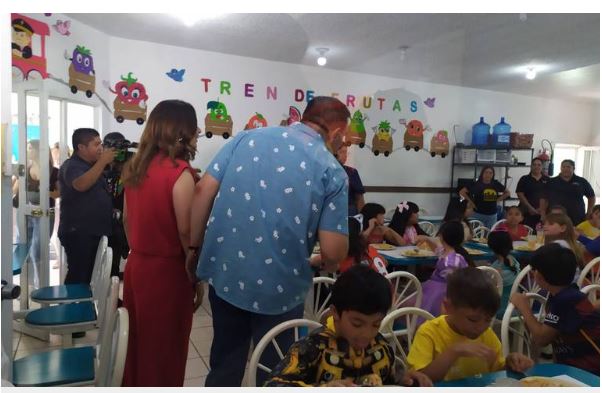 Posteriormente, se dio inicio al recorrido saludando a los pequeños que degustando su desayuno, luego se apreciará los trabajos realizados por otro grupo de menores.