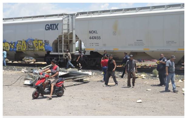 La unidad fue golpeada en la parte de atrás por la máquina de Ferromex, que iba en dirección sur a norte, provocando que quedaran desparramados junto a las vías cientos de paquetes de salchichas y otros embutidos, cajas de crema y mantequilla, quesos y latas de alimentos procesados.