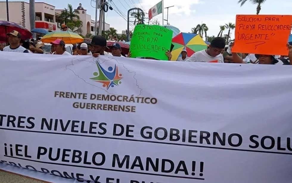 Los manifestantes, aglutinados en la organización Frente Democrático Guerrerense (FDG), exigieron a la presidenta Claudia Sheinbaum, a la gobernadora Evelyn Salgado y a la alcaldesa de Acapulco, Abelina López Rodríguez, resuelvan sus demandas.