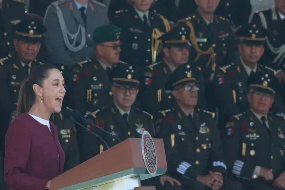 «Ya no es como antes que los Gobiernos se arrodillaban ante Gobiernos extranjeros o que miraban fuera como ejemplo a seguir, ahora no. Desde que llegó la transformación al Gobierno es claro que reivindicamos que a México se le respeta, que no somos colonia ni protectorado de ningún País», expresó Sheinbaum durante la ceremonia ante la tensión y amenazas del Gobierno estadounidense.Desde el Campo Marte, la Mandataria federal dijo que nunca traicionará la Bandera y que «ninguna fuerza en el mundo» doblegará al pueblo.»Porque además somos uno solo gobierno, Fuerzas Armadas y pueblo. Nosotros no traicionamos, ni a nuestro pueblo, ni a nuestra patria, ni a nuestra Bandera. México es un país grandioso y su pueblo es valeroso, sabemos que cuando nuestro pueblo se une en torno a su historia, su patria y su Bandera no hay fuerza en el mundo que pueda doblegar su espíritu», mencionó.